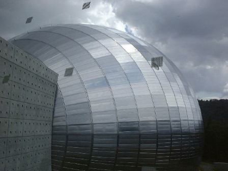 昨夜のお酒がもろに効いた人がいて一部プラドに乗るメンバの交代がありました。しかし、出発して間もなく1人がリバース(苦笑)。ちゃんと袋にしてましたから助かりましたが、先が思い遣られます。この日の目的地は勝山市にある福井県立恐竜博物館。そこまでは山道を通って行ったのですが、到着間近になって再び二日酔いの人々の周期がやってきました。途中に運良くあった休憩所(チェーンの脱着場)のトイレで二人が戻すという惨状(お食事中の方すみません)。普通の用も含めて小雨の降る中しばらく休憩となりました。その後、2日目から合流のO野氏を今は脱線事故の影響で走っていない京福電鉄(代行バスが出ている)の勝山駅に迎えに行き、バス組に遅れること数十分で博物館に到着。遠くからでも卵型の巨大なドームが目立つ建物です。入口側はこんな感じで、正面には恐竜の形をしたモニュメントがある噴水。中に入ってみるとこんなエントランスホールが見渡せます。下から見るとこんな感じでなかなかユニーク。観賞順路としてはこのエスカレータを下って地下1階から見て行く形になります。建物はどこもかしこも綺麗で、お金がかかっているなあという印象。福井県が恐竜に賭ける意気込みが伝わってくるようです(笑)。しかし、残念ながら展示物の撮影は制限されているので写真は少ししかお見せできません。まず観賞したのは、博物館1周年記念特別展の「ロイヤル・ティレル古生物学博物館の恐竜たち」。ここではずっと以前に大阪であった恐竜大博覧会で見たことのあるティラノサウルス・レックスの全身化石「ブラック・ビューティ」にも再会することができて少し感慨深ゲでした。その出口付近で売っていた恐竜のぬいぐるみが欲しかったのですが、時間がなくて結局買えず。その後、常設展示をほぼ順路通りに観賞しました。撮影OKポイントから見た卵型ドーム内部はこんなふう。大型恐竜の展示が結構多い感じです。あと、恐竜のみならず、地球の誕生から進化、人間の出現までの生物進化の流れも化石や標本などを使って展示されていて見どころ満載です。中でも岩石標本の展示スペースは展示方法が新しくて面白かったでしょうか(恐竜とは直接関係ないのですが)。昼食は各自館内のレストランで用意されたお弁当をいただきました。そのレストランから見た卵型ドーム。昼食後入ったダイノラボというスペースにはティラノサウルスの全身骨格が展示されており、本物の化石も含めていろいろ触れるようになっていました。上から、正面から、斜め前から、そして下からのティラノサウルス。それから2階部分のドーム入口には動くフクイリュウが展示されていました。あっと言う間に集合時間となり、恐竜博物館を後にしなければいけなくなりました。流して観ても充分楽しめたし、じっくり観賞すればもっと面白いだろうなと思われるところでしたね。