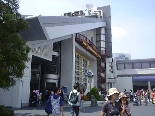 お腹を満たし、体力も少し回復した一行が次に向かったのはトゥモローランドです。マリリンモンローランドではありませんよ(間違わんて)。そこでは食後ということもあって大人しめのアトラクションから攻めます。「ミクロアドベンチャー」のファストパスを取って、まずは「ビジョナリアム」に入りました。時間旅行をするという設定でしたが、うん、なかなかすごい映像技術でしたね。ただ、ロボットのタイムキーパの声が所ジョージというのはどうか(笑)。なんだか「アルフ」みたいでした(知ってます?)。その後少し空いた時間はショップでグッズを見たり買ったり。そして「ミクロアドベンチャー」の建物に入りました。ここはいわゆる3Dメガネをかけて立体映像を楽しむというものですが、演出が凝っていますね。あれはびっくりするって(平静を装っていましたが)。次に向かったのが「スターツアーズ」です。これまた上手いこと考えられたアトラクションで、上へ下への大騒ぎ。映像とリンクしてかけられる加速度がなんとも絶妙。思わず外から見たくなってしまうのは夢のない話でしょうか(笑)。で、このトゥモローランドの3つのアトラクションに共通することを発見しました。それは待ち時間の間は何らかの演出をしてお客を飽きさせないようにしているということと、始まったら必ず何らかのアクシデントが起こる(という演出になっている)ということです。どこでも口を揃えて「大丈夫です。何も心配ありません。演出のうちです」なんて言ってるような印象(笑)。まぁトラブルがなにも起こらないのも面白くなさそうですが・・。