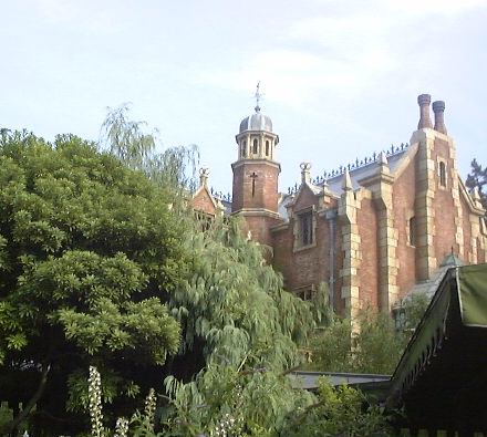 日も傾きかけてきましたが、まだまだ気温は高く涼むために(ほんとは空いてたから)次はファンタジーランドにある「ホーンテッド・マンション」に入りました。先日恐怖体験をしたからか、こずえさんに「大丈夫ですか?」なんて冗談で言われましたけど、大丈夫です(笑)。と言っても何が一体大丈夫なんでしょうか(にこにこ)。う〜んと、これもあまり内容は言えませんが、一番すごかったのは2番目に入った部屋でしょうか。あれはちょっと不思議な感覚を味わえますね。えっと、これも言って良いのか判りませんが、グループ毎に椅子型のゴンドラに乗って館内を回る仕組みになっているのですが、その中で案内役の館の主(?)の声がずっと聞こえているのですが、ゴンドラに乗り込んだとき思わず安全バーを自分で引っ張ってしまって、その声に「安全バーは勝手に下ろさないでくれよ」みたいなことを言われてしまいました(わーいわーい<嬉しいのか)。最後もちょっと面白かったかな。