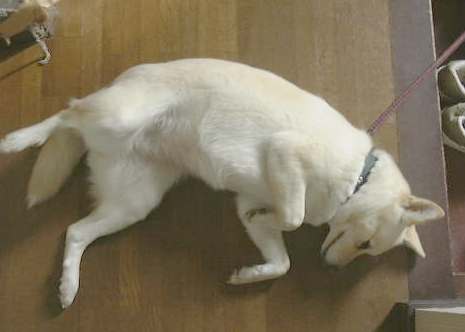 (1/2) え〜と、もう毎日同じような生活をしていたので記憶がおぼろげですが(苦笑)、この日も年賀状を眠気と戦いながら書いていたと思います。昼間はこたつに入りながらみかんを食べて、年賀状を書き(ほぼ完成)、夕方は父親と妹で出かけて、靴とか服などをいろいろ買い物。そして何の脈絡もなく降参の犬。前日もそうでしたが、今年はなんだか暖かい正月です。当初の予定では読書をしてお正月を過ごすはずだったのに、思うようにいきませんね。何度か読書に挑戦しましたが、眠気に毎回打ちのめされていました。というわけで、この日もぐ〜たらテレビを観ては寝て食べて、本当に文字どおり寝正月です。ちなみに年賀状は全部仕上がらず、投函は翌日に延期したのでした。ああ、何をやっているのかと嘆く日曜日なのでした。