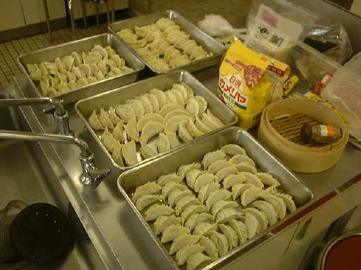 (2/5) ああ苦しかったぁ・・。ついさっきまで強烈な眠気に襲われていて、メールのリプライも手につかない状況でした(3時間くらい)。これもニンニク効果でしょうか(たぶん違う)。少し寝て楽になりました。え〜と、なぜニンニクかと言えば、そう、一部でお馴染み那古野コネクションですね。昨日も書いたように、オフ会は餃子パーティでした。もちろん食べるだけではありません。わいわい作るのです。皮でさえも。そんなわけで、以下に軽くその模様をレポートします(こんなことやってる暇あるのかと思いつつ・・)。
