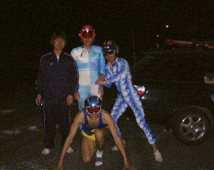 広島に到着したのが午後5時頃。バスの切符を買って食料調達後、新幹線口から出ている浜田行きの高速バスに乗ったのが午後6時20分でした。目的の瑞穂インターチェンジに着いたのが8時前、近くに宿泊している後輩に電話をかけて迎えに来てもらうことに。しばらく暇だったのでインターチェンジの入口をバックに停留所を撮ったり、その中の止まった時計を撮ったりしていました。そしてやってきたやつらがこれだ!(あやしいぞ!) 相変わらずおバカな後輩が泊まっていたのは瑞穂ハイランドスキー場の社員宿舎(バイトも泊れる)でしたが、ここにこっそり泊めてもらうことになっていたのです(他に宿らしいところがなかったので)。その夜はそこにいない人の分も含めて翌日の中枝杯(OB・現役対抗スキーレース)のスタート順の厳正なる抽選を行ないました。そしたらなんと1番を引いてしまったではありませんか。今シーズン初のスキーが本格的なレースだというだけでドキドキなのに、しかも1番スタートということになってしまいますます先が思い遣られるばかりです(溜息)。翌朝は準備のため何と早朝5時半にスキー場に集合だとか・・。ということで早く寝たしだい。