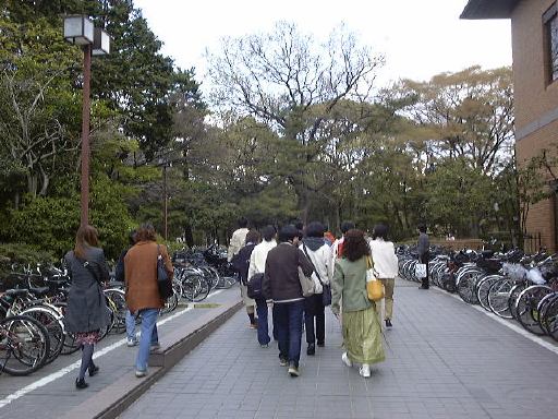 えっと、昨日は入学式がありましたが結局出ませんでした。というか開始時刻に間に合わず出れませんでした(笑)。まあ研究科が変わるとはいえ、単なる進学ですし、スーツもどうせ今は袖が通らないので別に良いのです(話を聴くだけだしね)。そんなことより、N大の入学式はT講堂で挙行され、毎年見られる光景ですがいろいろ配る人が多いこと多いこと。歩道の上には花道ができていました。だいたいがアパート斡旋業者かアルバイト斡旋業者か携帯電話斡旋業者のどれかでしょう。溢れる人で歩道が歩きにくいことこの上なしです。しかし、こちらにはだ〜れも何も渡してくれません。どさくさに紛れて何かゲットできるかと期待していたのですが、ティッシュももらえませんでしたね(笑)。敵もなかなかやるもんです。やはりスーツを着て行くべきだったか・・(<入学式はどうでも良いのか)。
