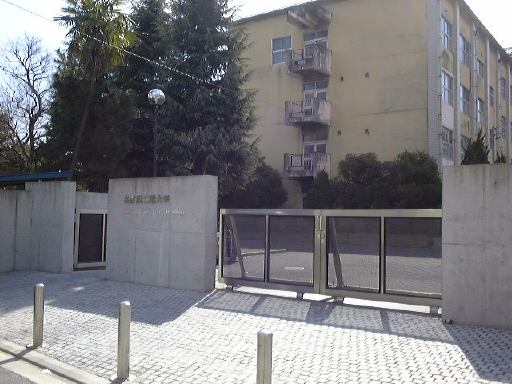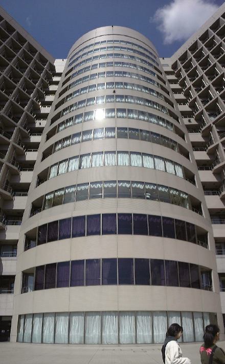 西側の入口(?)から見ると鋭角な建物の角が目立つ病院です。上から見るときっと台形をしているのでしょう。そして近づいてみると円筒形の部分もこのように圧巻(再びパノラマ風)で特徴的。まるでホテルのようなたたずまいだと、みな口々に言うのでした。「数奇にして〜」でここの6階の病室に寺林高司が入院していたわけですが、○○したと思われる●●●●がどこなのかはいまいちわかりませんでしたね。さて、病院を後にして道路を東に進み、T字路に突き当たったところが国立M工業大学こと名古屋工業大学です。門から入って行くと、例の8桁の数字を3つ確かめることができ、初めはこれで次がこれで最後はこれです。しかし萌絵のように「工科大ならではの人選」かどうかを判別することができないのは少し残念ですね(Akiraさんなら当然わかってる?なんて言ってみたり)。ただ不思議なモニュメントがいろいろあるのは工科大に限ったことじゃないかもしれません。こんな像(台座には「煌き」の文字)が立っているのも同様。そんな像を横目に見つつ一行は大学内を東に向かって歩きます。やがて現れた古墳跡のそばの通路で、座りやすい岩石(花崗岩)が並んでいることもあってしばしの休憩となりました(なぜか男性陣はみんな立っていましたが>もちろん座っていなかったという意味ですよ)。この時点でちょうど午後2時。日射しは暖かく、風は冷たく、快適な陽気。ここでは漫画化された森ミステリィとかその他いろいろな話で盛り上がっていましたね。結構な時間そこにいたでしょうか。太陽は5度くらい傾いていたかもしれません。結局殺人現場の実験室がどこなのかは分からずじまい。