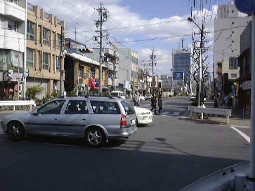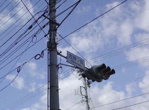 腰を上げた後は、名工大を東口から出て、ひとまず大学内にある桜が見られる道路を北に。あとは住宅街をくねくねと抜けて、通称100メートル道路の若宮大通を横断。中央では未完成でガラガラの都市高速(千早交差点方向を見て撮影)が見下ろせます。北東方向に延びる道路を歩き、到着したのが、恋之坂こと古井ノ坂です。といってもこんな交差点があるのみで坂らしい坂はありません。主張するのはこの標識くらい。ちょっと角度を変えて飯田街道沿いに見ても坂には見えません。まあこういうのはよくあることで、楽園町に楽園があるとは限らないのと同じでしょう(超ローカルネタ)。ひとしきり交差点を眺めた後は、飯田街道を南東に向かって歩き、再び若宮大通へ。地下鉄の吹上駅近くの喫茶店コメダで、ドリンクブレイクとなりました。ここではかなり長居をしましたね。偶然ですが女性陣はテーブル席に、男性陣はカウンタ席に座って、それぞれの場所で様々な会話が交わされていました。お店を出たのは午後4時頃だったでしょうか。出たところの様子はこれ。