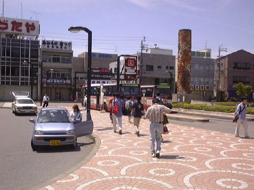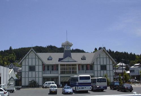 う〜ん、なかなか話が進みませんね(苦笑)。この調子だと大正村にいつ到着できるのかわかりませんが、もう少しご辛抱下さい。さて、名古屋を出発して次に千種駅で乗ってこられたのがFさん。その次の大曽根駅からはKつさんが乗ってこられました。この段階では少し混んでいてお二人ともしばらくは立っておられましたが、それでも高蔵寺を過ぎたあたりからは空きはじめ、やがて向い側に座られました。あとは他愛のない会話をしながら30分ほどで瑞浪駅に到着。ここで東鉄バスに乗り換えです。ちなみに瑞浪駅の外観はこんな感じで、バス停に向かう一行。バスの行程は約40分。高地へ向かうに連れて道は狭く窓から入ってくる風は冷たくなっていきます。途中、同じバスに乗っていた女性二人組がバス停を間違えたらしく、降りかけてまた戻るということがあったので少しタイムロスをしましたが、そんなことで腹を立てるような人はいない長閑なところです(笑)。当然渋滞もなく、ほぼ予定通りに明智駅に到着となりました。バスを降りるとすでに現地集合組のKさんとSーなさんとPさんが舞っておられました。<違う違う、踊ってどうする! 待っておられましたってことです。さっそく合流してご挨拶。Kさんは車を駐車場まで停められに行き、Sばしんはトイレに行き(笑)、他のみなさんはパンフレットをもっておじさんの説明を聴かれてました。ここは駅からして時代を感じさせるたたずまいです。すぐ近くには大きな案内版。明智駅は中央より左寄りの下に位置します。ちなみに地図の上が東になっています。