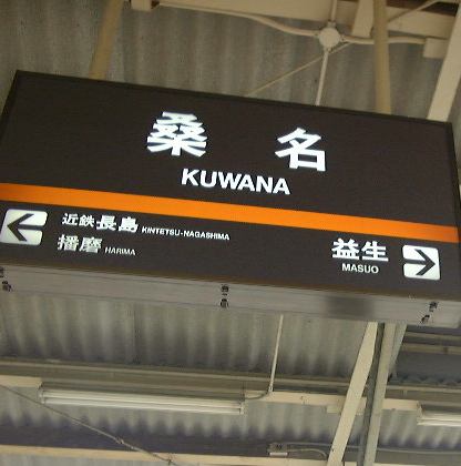 なにはともあれ、500円分の切符を買い、予定の急行列車に無事乗ることができてほっと一安心。今回の那古野コネクションオフは、「午前の部」と「午後の部」に分かれていて、「午前の部」の舞台となるのは、森先生の近況報告にも出て来たことがあるナローゲージで有名な近鉄北勢線です。これに乗って、行けるところまで行ってみようというのが主な目的。参加者は先ほどの3人に私を加えた4名だけでした。少ない感じもしますが、それを補って余りある非常に厳選されたメンバであると言えるでしょう(みんなオフ会皆勤なのです)。まずは急行で桑名駅まで向かいます。その車中、Kつさんから早くも名刺をいただきました。それも北勢線にちなんだデザインで裏には3種類の線路の幅(軌間)が描かれていて、どの鉄道がその軌間を持つのかも記されています。それでしばらくその話題に。軌間には主に、標準軌(1435mm)と、狭軌(1067mm)と、特殊狭軌(762mm)があり、北勢線は一番狭い特種狭軌(ナローゲージ)を持っている小さなローカル線です。ここで面白いのは、近鉄には3種類の軌間が存在しているということです。例えば、名古屋線は標準軌で養老線は狭軌なのです。「吸収合併を繰り返してきた会社を象徴している」とはKつさんの弁。その他にも、地下鉄東山線が新幹線と同じ標準軌なのに対し、名鉄と相互乗り入れをしている地下鉄鶴舞線が狭軌であるというところもなかなか興味深いです(同じ地下鉄なのにね)。あと、先日あったT学園の学園祭の話で盛り上がっていたでしょうか。そうそう、ここでこれ見よがしに持っていたトートバッグのことをようやくKずえさんに指摘されました、わーい(<待ってたのか)。ずっと言われなかったらどうしようかと思っていましたよ(笑)。自分からどう?どう?って言うのもどう?と思わないでもないからね〜。そうこうするうちに桑名に到着。