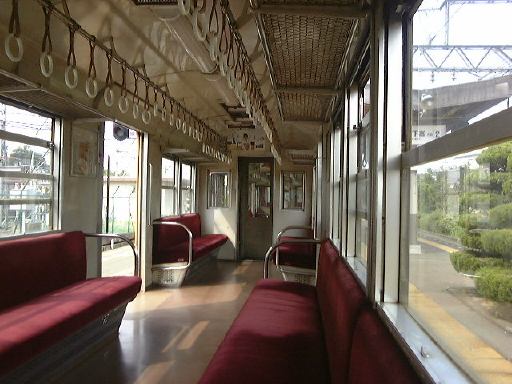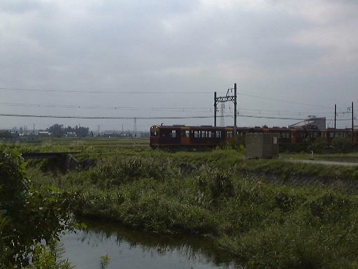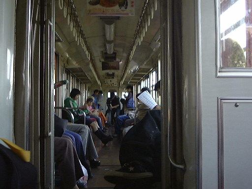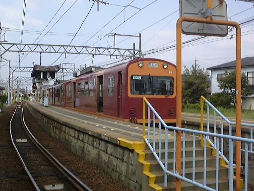乗った電車は終点の阿下喜(あげき)行きで、11時30分発でした。通勤電車のように横向きに配置されたシートに座ると前に座っている人と膝が触れ合うくらい、と言っては大袈裟ですが、今にも足が当たってしまいそうな幅しかありません。小さいとはいえ、ある程度近代化は進んでいる(クーラはない)ようで、特別古いという印象はなく普通の電車と同じようにドア(一枚扉)が閉まり、結構多くの乗客を乗せて走り出しました。ただ、線路幅が狭いためか揺れはバス並みに激しいです。カーブが迫ってくると止まるんじゃないかというくらいにスピードを落とす箇所もいくつかありました。この路線の沿線には、住宅や学校などがあり初めのうちは人の出入りも結構ありましたが、桑名から離れるに従って周りはどんどん田舎になっていき、乗ってくる人はほとんどいなくなりました。そうそう、この電車はワンマン運転ということになっているのですが、実は車掌さん(これがまた背が高い)が1人乗り込んでいて、新たな乗客が乗ってくるたびにその人のところへ行って乗車券を売り付けて(<失礼な言い方だな)いくのです。というのも、ほとんどの駅が無人駅になっていて改札を通らないからみたいですね。車内アナウンス(これは録音されていて女性の声)でも「〜でお降りの方は駅の乗車券入れに乗車券をいれてください・・」ということを毎回言ってきます(笑)。そして「乗車券をお持ちでない人は前方の運賃箱に運賃を入れてください・・」ということもアナウンスされます。見れば一番前の車両の一番前にちゃんと運賃箱が備え付けてありました(バスみたい)。なるほど、この辺が「ワンマン運転」なんだなと納得。名古屋から500円分の切符しか持っていなかった我々ですが、「午後の部」の集合時間を鑑みて、結局六把野という駅で下車。60円分の乗り越しです。しかし、それを切符と合わせて運賃箱に入れようとしたら、見ていた運転手に切符だけ入れようとしている客だと勘違いされたらしく、「駅にある箱に入れてくれ」と言われました。仕方なくホームに降りて出ていく電車をお見送り。そして駅で箱を探したのですが、やはり乗車券入れしか置いてなくてどうしようもなかったので、乗り越し精算をすることなく切符だけを箱に入れて駅を後にしたのでした。悪気はなかったので許してくださいね(>近鉄の方)。