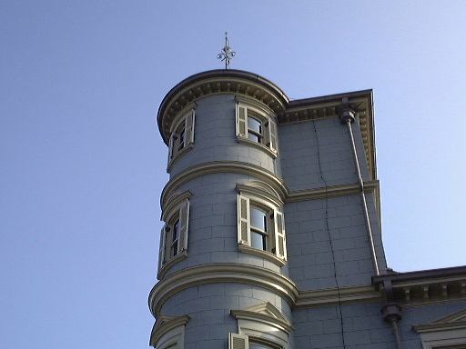 建物の外に出て空を仰げば洋館部分の塔が映えています。さてここで、自販機のあるところでしばらく小休憩となりました。近くにはこんなトイレもあります。が、その期待の自販機にはなんと「故障です」という貼り紙が。これで最初は諦めてしまいましたが、電源は入っている模様でどうも怪しい。Kつさんから金沢土産の「さい川」が振る舞われ、それをいただいた後、試しにこの自販機でコーヒーを買ってみることにしました。するとどうでしょう、ちゃんとコーヒーが紙コップに入ったではないですか。味も一応まともです。これは何かの陰謀でしょうか(笑)。我々は騙されていたと言うしかありません。途中で業者さんらしき人が招き入れられ、この自販機を開けて中を見ていましたが、「ブルーマウンテンが調子悪い」とかなんとかという会話が聞こえました。どうやら一部が故障していたみたいです。ということで、貼り紙に嘘はなかったわけですが、やっぱり騙されていたような感覚は拭えません(ぶつぶつ)。