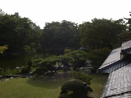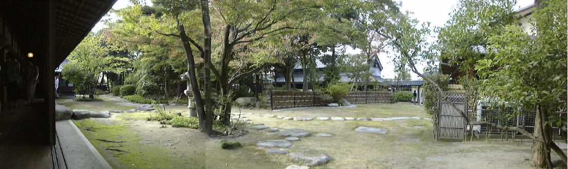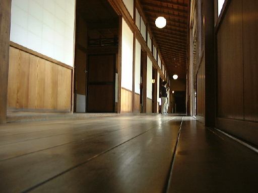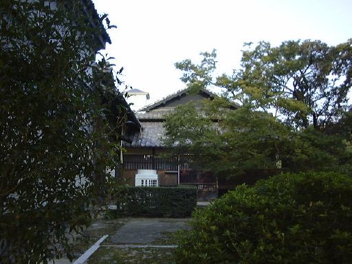 まずは下から見上げた玄関ホール。そこから右に入ると食堂と客間。塔の1階部分も含まれる応接室を窓側から。2階へ上がり、さらに塔の上へと続く階段(立入禁止)を見上げ、広い居間には設計者コンドルの肖像などもバイオグラフィとともにあり、テラス側から見た居間がこれ。振り返って今度は南西側の庭と南東側の庭を眺めます。あと、書斎をぐるりと見て、2階のトイレもチェック。階段を降り、次は和館の方へ移動。ここではやはり畳みと板張りの廊下が平行しているこの図が撮りたくなります。その廊下からの中庭の眺め。そして鼠の視点の板張り廊下。和室では鏡のようなカメラマンの撮り合いをして、反対側に移ってもう一枚。さっきの廊下を逆側から見て、奥の台所からその廊下部分を外側から眺めたり。南側廊下からは池なども臨める南側の庭をぐるりとパノラマ風。ちょうどこの日は番蔵棟で「桑名今昔展」という催しものが開かれていて、受付で名前と住所を書かされました。そこを通り抜けて離れ屋に続く出口から見た番蔵棟の南面。西の奥にある誰もいない旧高須御殿を見て、内玄関棟に戻るとみなさんはすでにお待ちかねでした。どうりで姿を見なかったわけです(苦笑)。