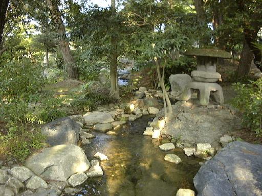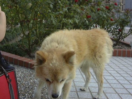 休憩後は、中庭からの道を通って、南の庭の池の周りをぐるりと回りました。和館部分の西端や、池のほとりに立つ何でもない灯籠。そして南西側から池越しに見た洋館和館。さらに庭を東側へ歩いて行ったところで、なんと再びあのおじさんに遭遇です(うわっ!)。まだいたのかー! っていうか、運悪くMつるさんが捕まって早速説明を受けています。そんな光景を尻目に、こんな沢を眺めたりして難を逃れようとさりげなく逃げ回るぱふぇら〜たち(笑)。この後芝生のところを横切って中庭に抜けようとする間にも、そのおじさんはFさんに説明をしていたり、微妙な距離を保って我々の後ろから歩いて迫ってきます(汗)。早足でようやくその手から逃れることができたときには、おじさんは近くの縁側に座っていた別のグループにターゲットを移していました。結局、このおじさんには二度と合うことはありませんでしたが、六華苑の従業員でもないようだったし、その正体は依然として謎に包まれたままです(笑)。最後に、北東側にある温室を通り抜け(本当に通っただけだった)、そろそろ帰路に就こうかとしたとき、こんな犬がよろよろと近づいてきました。首輪はしているもののなんとなく弱ってるふうです。もう少しで連れて返りそうになりながらも、断腸の思いでその犬を首切って(うわっ)、って違う違う、振り切って我々は六華苑を後にしました(誇張あり)。歩いて桑名駅まで戻り、帰りは安いJRで名古屋まで。今回は2次会もなくそこでお開き、解散となったしだいです。運良く今回も天気に恵まれたオフ会でしたが、なんとなくトラベルミステリィな1日でしたね。「北勢線」がトラベルで「解説好きおじさん」がミステリィだったという程度ですが(笑)。