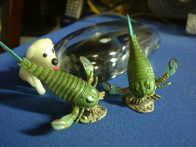 午後からいよいよ次の実験開始。学生なのでちゃんと研究もしてます(とたまには言っておかないと)。忙しいながらも合間に生協に行って「子供の科学」と専門書を1冊購入。珍しく小説は買いませんでした(笑)。それから、バースデーテディとチョコエッグがなくなった恨みを込めて(ウソ)チョコラザウルスを2つ買いましたが、開けてみたらなんと2つともユーリプテルスでしたよ。ぎゃふ〜ん。この悔しさをバネに(ウソ)2つ並べて写真を撮りました。わーい、なんか気持ち悪いなあ!(にこにこ)