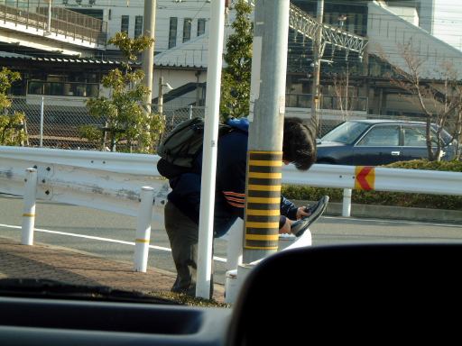 ちょうど通勤ラッシュ時だということを失念していました。自堕落なグータラ生活を続けていると、そんな常識ですら忘れてしまうようです。道路は混み気味で予想以上に金山まで時間がかかってしまい、到着したのが8時45分頃。しかも運悪く(というか計画性の無さが災いして)直前の8時44分に笠寺に行ける電車は出たところで、次の電車は10分待たなければならないという状況に陥ってしまいました(とほ〜)。金山から笠寺まで約5分。次の電車は8時54分発。う〜ん、まだなんとかギリギリ集合時間には間に合いそうではあります。しかし、そうは問屋が卸さないものです。電車が遅れたのかなんなのか、結局2分ほど遅刻してしまったのでした。どんな理由があるにせよ遅刻はいけません。すみません。と謝ったものの、先に来ていたのは同僚のT中氏だけで、もうひとり来るはずのバイトがまだ姿を見せていない様子でした。だからって遅刻が正当化されるわけではありませんが、待つ側になってみるとなんとなく気が楽にはなります。会社の人と軽く会話を交わしながら待つこと十数分。依然として第3のバイトが現れなかったので、T中氏とともに道路脇に停められていたワンボックスの車の中に入っておくように言われたのですが、その時でした、この日一番といってもいい出来事が起こったのです。