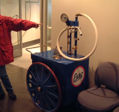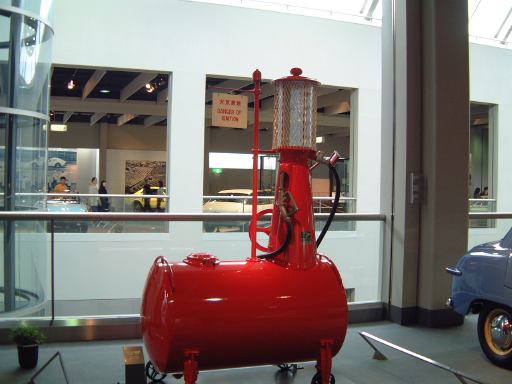 えっと、肝心の料理の方はカレーライスが噂通り美味しかったようです。自分が食べたシーフードドリアもご飯のケチャップ味が濃いめでしたがまあまあの味。そうそう、ケチャップといえば、Fさんが注文された「豚ヒレカツ”なごや”(<実際にこんな表記だった)」に付いてきたソースが普通のケチャップだったのには、3人で「“なごや”ならせめて味噌じゃないのか?一体どこが“なごや”やねん!」というツッコミ(笑)。最初に運ばれて来たのはサラダだったのですが、先に食べ始めておられたGんてつさんのサラダと見比べると違和感があります。で、よく見てみたら自分のサラダだけドレッシングがかかってないじゃないですか。テーブルには、かけるものといえば塩・コショウぐらいしか置いてないし、自分だけ特別なサラダだとも思えません(っていうか、ドレッシングがかかってないのが特別というのは変)。おそらくかけ忘れたのでしょう。ちょっと「おいおい」と思いましたが、まあドレッシングはあまりかけて食べる方じゃないので、とりあえずコショウをかけて一口(食べたのか!)。いや、Fさんに塩のつもりで取ってもらったのがたまたまコショウだったので、ま、試してみるかってね(コショウの味しかしませんでしたけど)。そのあとはドレッシングをかけてもらうこともせず、そのままサラダを食べたしだいです。結局そのレストランには、食事とおしゃべりに華が咲き1時間近く居たでしょうか。代金は博物館の入場料と合わせて一人2000円を出し、ここでもKずえさんにまとめて払っていただきました(ありがとうございます)。お腹も膨らみ、なんだかもうすっかり語り尽くした感もあり、このまま帰ってしまっても充分満足のいくオフ会になりそうではありましたが(笑)、実はこれからが本番なのです。今回の目的は森先生のコレクションたちを見ることですからね(忘れてませんか?)。というわけで、レストランの出入口横に置いてある手押し車式の給油機の前で集合時間を決め(帰りのミュージアムライナーの発車時刻を考慮して午後3時45分に)、あとはそれぞれが自由見学をするということに。ひとまず解散となったのでした。わらわらわらわら(<解散する音)。
