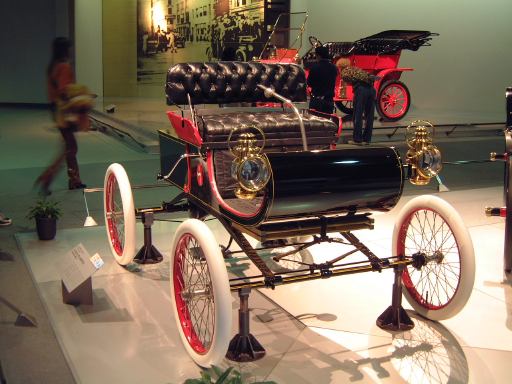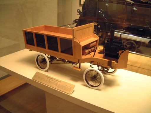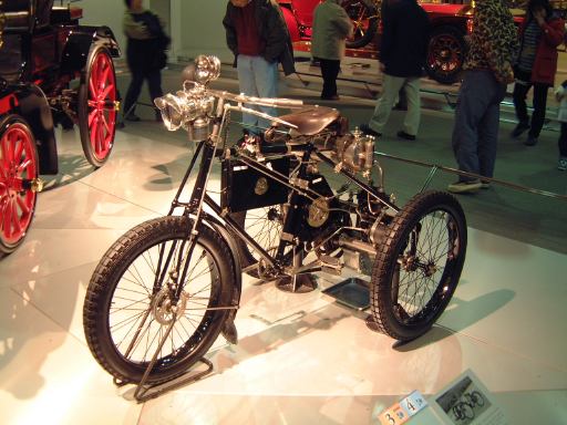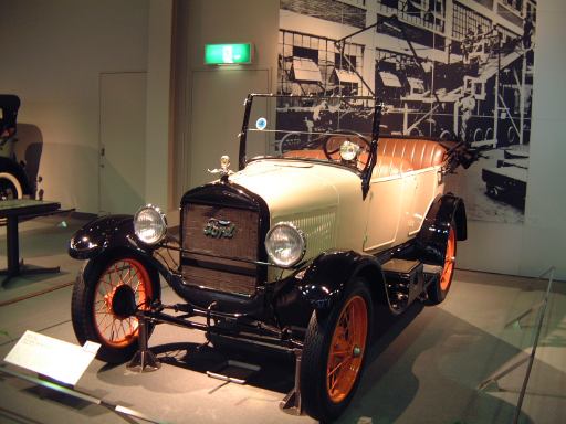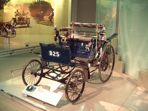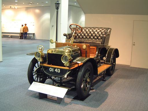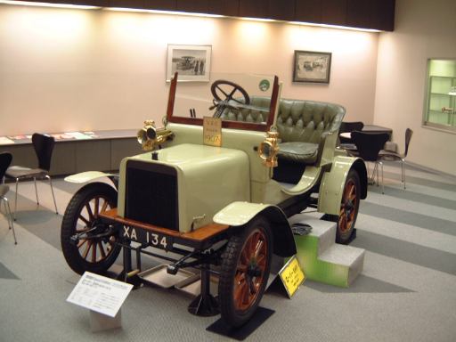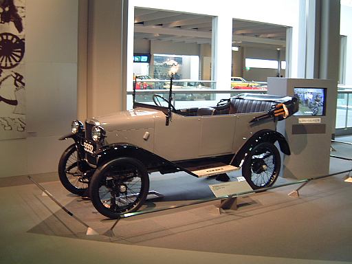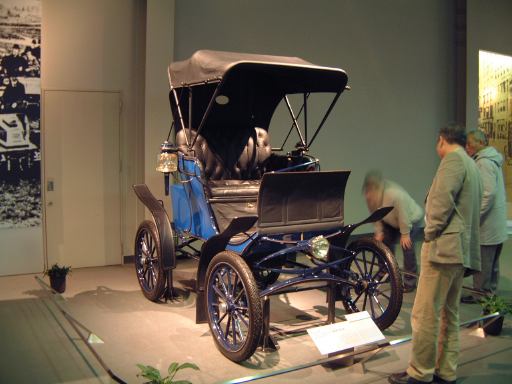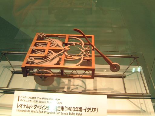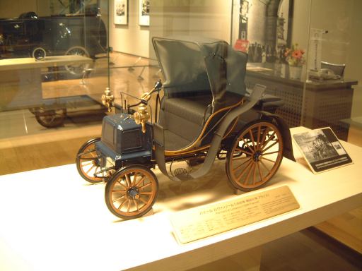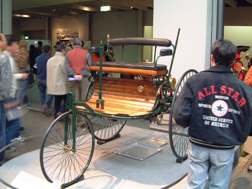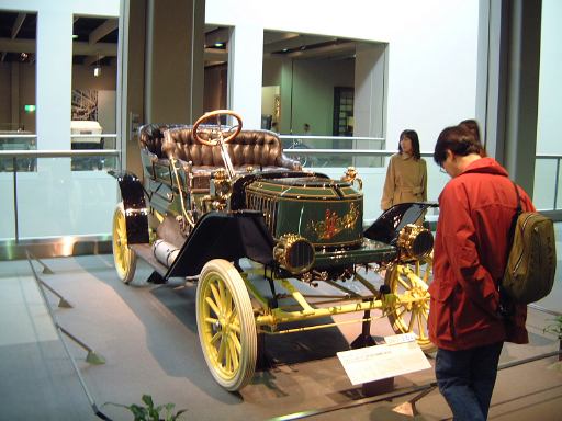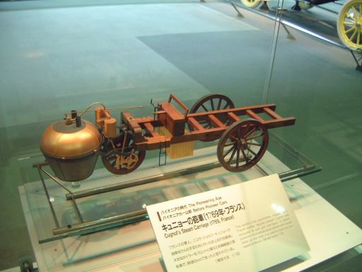 エスカレータを降りてすぐ左手にあるのが、ベンツ・パテント・モトールヴァーゲン。ガソリン車の第1号と考えられているもののレプリカです。もちろんこれも森先生のコレクションですね(笑)。エンジンは水平単気筒4サイクルで時速15kmの走行が可能、史上初のディファレンシャルギアを備えていたらしい。ディファレンシャルギアって、クルマがカーブするときに生じる左右の車輪の回転数の違いを吸収する機構でしたっけ?(あやふや) ま、とにかく最初のガソリン自動車がここにあって、その奥のスペースに入っていくと、パイオニアの時代というテーマでずらっと展示されています。近いところから、3輪のド・ディオン・プートン・1 3/4HPと、FR方式を持っていてその後の自動車技術の基礎となったパナール・ルヴァッソールB2と、名探偵ホームズが乗っていたようなオールズモビル・カーブドダッシュが3台並んでいて、その奥にもシックなベンツ・ヴェロや、昔から大きかったロールスロイスのシルバーゴーストや、自動車の大衆化に大きく貢献したフォード・モデルTなどが並んでいます。順路としてはフロアを上から見て反時計回りに見て行く感じです。途中には、自動車が登場する以前のクルマとして、模型のレオナルド・ダ・ヴィンチの自走車やキュニョーの砲車などがあり、さらに先にはベイカー・エレクトリックがあって、これはその名のとおり電気自動車なのです。他にも、見た目がきらびやかな蒸気自動車のスタンレー・スチーマーモデルや、水冷単気筒エンジンのキャデラック・モデルAがありました。いずれも100年ほど前の自動車ですが、当時からすでにいろいろな動力が試されていたということですね。と、こんな調子で真面目に無謀にもすべてのクルマを紹介しようと思っていたところ、実はトヨタ博物館のホームページにヴァーチャルトヨタ博物館なるものがあって、そこでほとんどの展示物の詳細を写真付きで確認できるようになってることに気づきました(笑)。ああ、なんだ、これがあるなら全部紹介したって仕方ないじゃん。ねぇ。ふぅ、良かった良かった(<助かってる人はだれ?)。そうと判れば、ここからはクルマに関することは適当に流しつつクルマとは関係のない話題を挟んでいっちゃったりするつもりだけど、それで良い?(<訊くな)