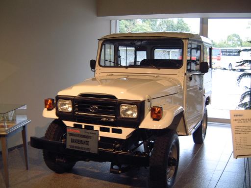 展示スペースから出ると、エスカレータで1階に降りるようになっています。3階にはギャラリィと図書閲覧室がありますが、この日はギャラリィでの展示はありませんでした(一応上ってみた)。1階に降りるとそこにはカフェテリアコーナやミュージアムショップなどがあり、ショップはこの人だかり。このとき集合時間が目前に迫っていたため、急いで土産(自分用)をひとつだけ買い、クラシックカーのスイフト・9HPや、出口付近にある新着車両のブラジル生産車トヨタ・バンデランテ・BJ50LV型や、本館前にあるトヨタ・ボンネットバスをしぶとく撮影しつつ(笑)、集合場所である本館入ってすぐのインフォメーションコーナへと向かいました。着いてみるとみなさんとっくに集まっておられたご様子です。