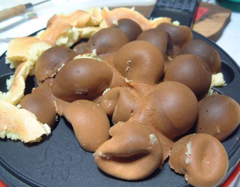 昨日よりは涼しかった火曜日は午後から大学へ。そしてほとんどの時間、新入生向けに開かれるプレセミナの紹介用のビラに書く文句やデザインを考えていました。文章自体は適当に書いたので(苦笑)すんなり書けたのですが、全体のレイアウトなどに結構時間がかかってしまい、おおまかに出来上がったのは夜になってからでした。まあしかし、大したものじゃありませんね(自分で言うのもなんですが)。他の人にも見せて、もう少し手直しすればちょっとはましになるかもしれません。夜中は先日のオフ会のレポートを進めたり、そんな調子で一日が過ぎていったわけですが、気づけば本日食べたのはベビーカステラ(といってもホットケーキミックスの生地をたこ焼き器で焼いただけ)のみでした。帰宅してからちょっと思い付いたのですが、たこ焼きの鉄板一面に生地を広げて、ひっくり返して半球状のもこもこが付いたホットケーキが作れるかなと思い実際にやってみたところ、生地が周りから溢れてしまってもう大変(笑)。次々にこぼれてくる生地をティッシュで拭き取ったり塞き止めたりしているうちに時間が経過し、いざひっくり返そうとしたらすでに焦げかけていてなかなか剥がれずますます時間が経過するという悪循環。なんとか剥がしてひっくり返して結局出来上がったのは、かなりいびつなこんなやつでした(苦笑)。これを3分の2ほど食べて就寝。