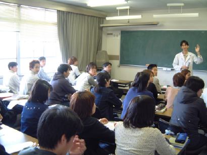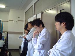 初回はガイダンスのみで、講義室にてK辺先生のありがたいお言葉が少しあって(名目上はK辺先生の担当授業なのにこれ以降登場することがないから驚きだ)そのあとは助手のA原先生による実験に向けての説明が少し。そこには、実験を担当する他の助手先生の方々や我々TAも出席していました。ちなmにTAは他に、同僚のT中氏とM1のT橋君がいます。今回からそのTAの仕事には、授業風景を写真に撮っておくという仕事まで含まれており、さっそく撮ってみました(ここで公開するのが仕事ではありません、念のため)。地球科学の学科のわりには女の子が多いかもしれない。別にどうしようってわけじゃないですが(笑)。あと、錚々たるスタッフの姿もついでに一枚(寝とるがな!)。その後、全員実験室に移って、実験の心構えや具体的な実験内容や各々の実験器具の確認などが行なわれ、午後3時頃には終了。初回は何もすることがなかったですが、これから実験前後の準備やあと処理なんかで毎週忙しくなりそうです。まあ、仕事なので文句は言えません。がっぽり稼がせてもらいます(にっこり)。