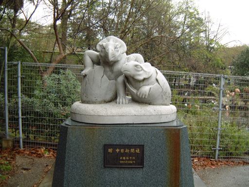階段を降りたあとは来たときとは別のルートを通って、一行は正門までぞろぞろと歩いていきました。大型の動物はすでに外にはいませんでしたが、カバのところでは動物の声シリーズ(いつの間にシリーズ化?)最後となるめずらしいなき声をゲット。夕闇迫るメインストリートに戻ってくると、正門から出ていこうとする人々の流れができており、我々もその流れに乗って、東山動植物園を巡るツアーも終わりとなりました。結局閉園時間ギリギリまで居ましたね。外に出たところでひとまず解散した後、LさんとO崎フラグメントさんからそれぞれ銀のキョロちゃんをお預かりしました。なんか毎回のように預かってますが(笑)、現バージョンのグッズはすでに全部当ててしまっているのでしばらく遣うことはないでしょう。いずれ新しい缶詰が登場したときのために大切に保管させていただくショゾンです。その後、東山動植物園に近いところに住んでいる徒歩で来られたKずえさんと自転車で来た私は、すぐに帰路に就いたのですが、地下鉄で来られた方々は名古屋方面へ向かわれて居酒屋で2次会を楽しまれた模様です。なにはともあれ参加された皆様お疲れさまでした。