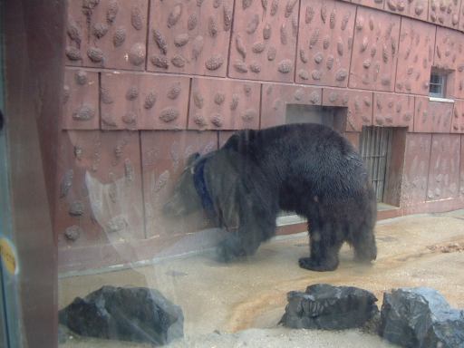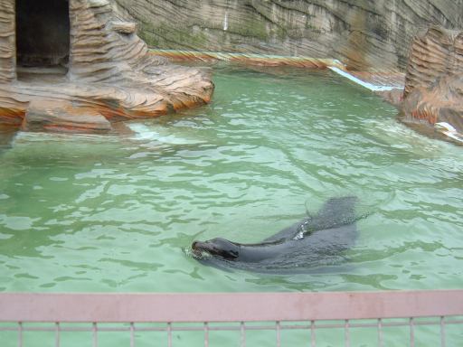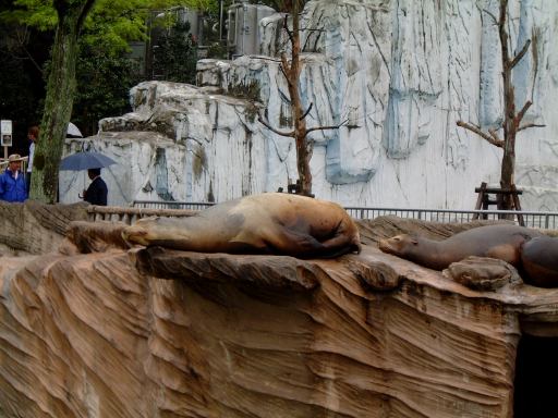 そこから日通さんの背中を見ながら少し坂を登ると、クマ舎の入口がありました。中に入って順番に、マレーグマ、ナマケグマ、ニホンツキノワグマ、アメリカクロクマなどが、うろうろしていましたが、写真ではあんまり違いが判りませんね。最後のこのクマは名前を確認しなかったので自分でも何だか判らないほどです(苦笑)。ちなみにクマを眺める人々はこんな感じ(カメラ目線なのはだれ?)でした。さて、そのクマ舎をあとにしたところにようやく現れたのが、ゴマフアザラシのプールでしたが、何故かここに「アシカとオットセイの違いはいくらか」の謎を解くものがあったのです。実はその隣にはカリフォルニアアシカのプールがあって、そこにも同じく謎を解く鍵がありました。「数奇にして模型」を既読の方にはバレバレですが、一応未読の方もご覧になっていることを前提として、この日記では答えは公開しないでおきます(にこにこ)。ヒントはすでに登場していますので、考えたい人は考えてみましょう。那古野コネクションメンバ限定のレポートページでは、後ほどちゃんと記述したいと思います。
