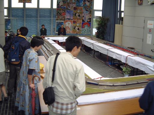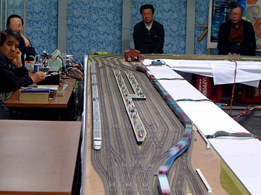 そうこうするうちにエレベータが降りてきて、我々全員とその他数名のお客さんが一緒に乗り込み(思ったよりいっぱい乗れる)、5階の展望室まで一気に上がりました。ここのエレベータにはデパートではすっかり見なくなったエレベータガール(この名称がもう古いか)もいて、5階に着くまでの間はスカイタワーについての説明などをしてくれるのですが、ちゃんと5階に到着すると同時にしゃべり終えるところは、さすがにプロですね。エレベータの中に現在の高さを示すデジタル表示があって判ったことですが、5階はちょうど地上100mの高さでした。東西南北に正方形の4辺が対応するような展望室になっていて、天気は相変わらず悪かったですが、西側からはN大学周辺が望め、東側にはS女子大や植物園内のお花畑(そういう名前なのです)が見えました。それから階段で4階の展望室に降りて、まったりおしゃべりに興じたり、知恵の輪に興じたりで時間を潰していたでしょうか。この時点で主要な目的はすべて達成し、もう見るべきものはなかったのですが(笑)、お茶ぐらい飲みたいねってことでスカイタワーを降りることに。下りのエレベータは4階から乗れるようでしたが、7階のレストランから降りてくるお客さんも乗っているため、那古野コネクションメンバが一度に降りることはできません。というわけで数人を残して、先に出口のある2階に降りました。するとそこに広がっていたのは、会議机の上に乗っているいかにも仮設という雰囲気の鉄道模型でした。常設展示じゃないとはいえ、レイアウトが単純なことに加えて、お客さんが少ないからか操作しているおじさんたちもなんだかいい加減だし(笑)、なんとも言えない退廃的なムードが漂っているのは気のせいでしょうか。そんな鉄道模型を残りのメンバが降りてくるまでしばらく鑑賞。模型はぐるぐる回ってるだけなのであまり長時間楽しめるものではなかったのですが、エレベータが降りてくる直前に発生した貨物列車の脱線事故の場面は少し楽しめたかもしれません。このとき、Kつさんが知らせるまでおじさんたちが事故に気づかずにいたのは、現代日本の何かの縮図を見ているかのようでした(笑)。そうそう、ここでKずえさんから、今月発行の「ダ・ヴィンチ」の百人書評のページに、先月投稿した私のコメントが載っているということを聞いたのです。わーい、ほんとですか! いやあ、まさか採用されるとは、嬉し恥ずかしですね〜(にこにこ)。森先生の作品に対する書評なのでなおさら嬉しいです。早く「ダ・ヴィンチ」を買って自分でも確認しようと思いつつ、メンバが揃ったところで出口から出たのでありました。つづく・・。