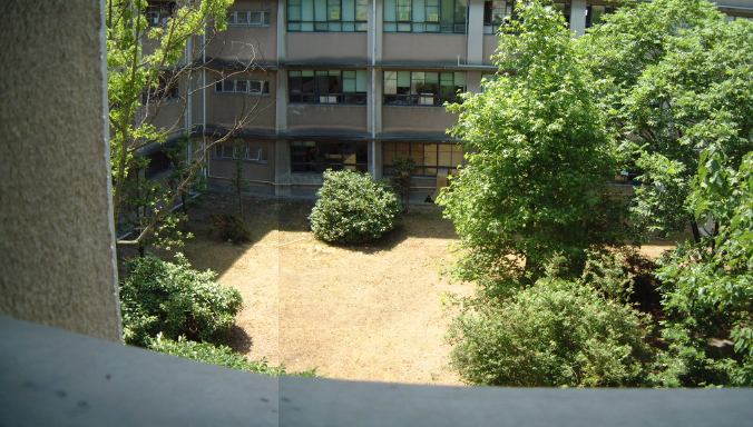 (6/14) というわけで朝になりましたが、テレビを点けなかったので映りが改善されたのかどうかは不明のまま。金曜日の本日は少しゆったりして午前10時頃に家を出ました。もちろん宿泊中のTさんも一緒です。相変わらずアパートの周りには外壁塗装のために足場が組まれていて、玄関ドアにはビニルが貼られています。道路へのアクセスが悪くなっている通路をすり抜け、駐輪場に置いてある自転車を押しながら歩いて大学方面へ。ものの5分で大学前に到着。そして昨日と同様「じゃ」と言ってTさんとは別れ、それぞれの道へ。