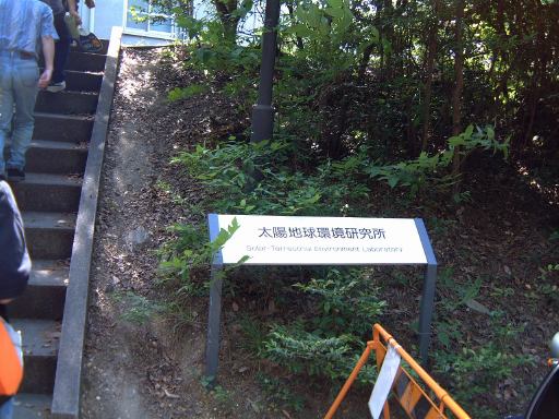 そうして喫茶室を堪能したあとは、すぐそばにあった南東方向に延びる坂道を登っていきました。どんどん森林地帯へ入っていく形になり、夜は怖くて独りでは歩けなさそうな道です。そんなところに何があるのかというと、「ぶるぶる人形にうってつけの夜」に出てきた太陽地球研究所です。上り坂を登り切るか切らないかという目立たないところに、太陽地球環境研究所の入口がありました。このように正確には作品中と若干名前が違っています。それだけでなく、作品ではここの実験棟であれがああしたりあの人たちがあんなことになったわけですが、残念ながらそれらしい建物も見つかりませんでした。おそらく場所も違っているんでしょうね。そもそもそんな建物なんて存在しないのかもしれません(地図上でも確認できませんし)。でも良いのです。「太陽地球研究所」という名前を確認できただけでファンとしては妄想の材料が増えるというものでしょう(笑)。