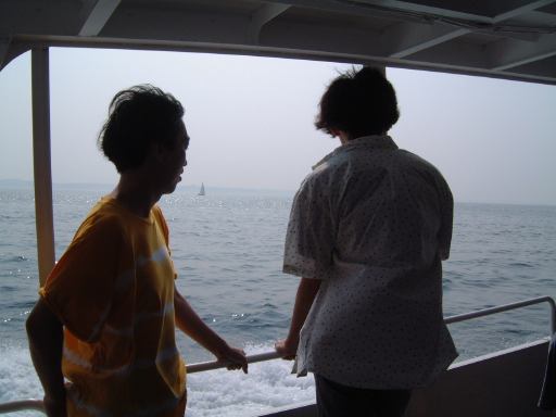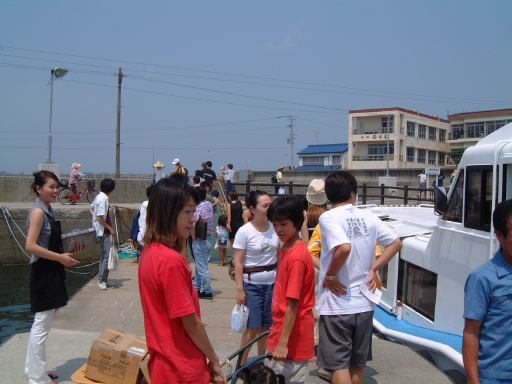 (8/4) で、日曜日。本日は那古野コネクションの定例オフ会の日。朝になってから帰宅しようとしたら雨が降り始めていて、折り畳み傘を差しながら帰宅。しばらくすると雨は急激に激しくなり、雷も鳴り始め、オフ会は大丈夫なのか?と心配になるほどでしたが、夕立ちみたいな一時的なものだったらしく、7時半過ぎに家を出る頃にはすっかり止んで、涼しい風が吹いていました。さて今回のオフ会で我々が向かったのは、那古野コネクション立ち上げ当初からずっと行ってみたいと言われ続けてきた「すべてがFになる」の惨劇の舞台となった妃真加島です。ここに来るまで長かったですが、森ミステリィのまさに原点、ここを訪れないでは死ぬに死ねない(別に死なないけど)という念願のその場所に、ついに我々は足を踏み入れることとなったしだいです。名前の上では実際に存在している日間賀島がその島に相当するのですが、訪れることとなったのは妃真加島の本当のモデルとなったとされている隣にある佐久島の方。季節も小説に合わせて暑い暑い真夏です(夏を待っていたのもすぐには訪れられなかった理由のひとつ)。そしてそんな暑い中用意されていたメインイベントはバーベキュー(笑)。本当ならキャンプまでしてしまいたいところだったのですが、泊りがけとなるといろいろ大変なことも増えるので、今回はとりあえず日帰りで昼食にバーベキューという形になりました。