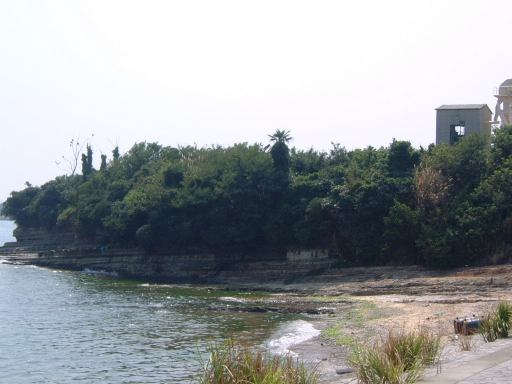 着いてみると次の船の時間までは1時間近くありましたが、うろうろするのも暑いのでチケットを購入したあとは屋根付きの休憩スペースに座り、日陰の中で休憩となりました。で、Gんてつさんに預けていた本日の参加費からのお釣を受け取り、各自自販機でジュースなどを買って飲んだのですが、その自販機がディスプレイされているものと微妙に違うものを出してくる箇所があって面白かったです。たしか「水・レモン・きれい」が何か別のレモン系のジュースになっていたのですが、商品の入れ替え時にディスプレイを入れ替え忘れたのかもしれません。そんな飲み物を飲みながら、まったりと雑談にふけっていました。Aなあなさんは自衛隊の勧誘を受けたことがあって興味はなかったけど年齢制限にひかかっていてなんだかなぁと思った話とか、Kずえさんに至っては大学の新入生に間違われて、嬉しいどころかいくらなんでも腹が立ったという話もあり、若く見られれば良いというもんでもないのだということを知りました。勉強になりますね(笑)。そんな話を聞きながら、長閑な時間は過ぎていきました。日陰は比較的涼しく、たまに吹く風で心地よくなってうとうとしてしまいます。寝不足も手伝って横になったら簡単に寝れそうな感じ。チケット売り場にはこんな犬が居ましたが、犬もそのうちに寝てました。