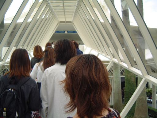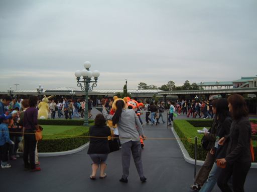 全員がロールブレッドを食べ終わるまでにしばらく時間を要し、ディズニーランドのゲートへ向かったのは午前8時前でした。予定よりは遅くなりましたが、前回よりは前の方に並べそうです。Kずえさんのみチケットの引き換えに向かい、他のメンバはゲート前に並びました。30分くらいしてKずえさんも合流し、午前9時までさらに待ちます。その間、Gんてつさんからは記念の名刺が配られました。ポジフィルムの断片が挟まっていてなかなか素敵な名刺です。それからそうそう、ここで誕生日のお祝いの言葉を皆様からいただけたのでした。ありがとうございます〜(にこにこ)。さて、そうこうするうちに9時を迎え、いよいよ開門。なだれ込み走っていく人々。いつもながらすごい勢いです。走ってはいけないという小学生でも解るような約束事があるなんて信じられない光景です。みんな必死なんですね。