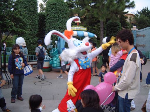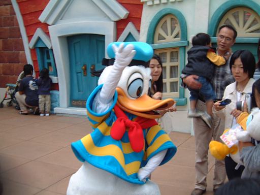 カヌーでぐったりした一行が次に向かったのは講談社提供のトゥーンタウン。でしたが、その前に寄ったのがガラガラ状態だった「イッツ・ア・スモールワールド」です。ここで平和な気分を味わい、再びトゥーンタウンへ。子供には怖いピノキオや、個人的に好きなロジャーラビットや、ポーズを決める今回の主役ドナルドなどに出逢いました。あとは街のギミックを楽しんだだけでトゥーンタウンをあとにしました。