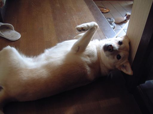 さて本日土曜日は、なんと昼過ぎまで寝てしまい(今更驚くことでもない)、目覚めてからは吉本新喜劇を久しぶりに観ました。またベタな関西人の土曜日の過ごし方ですね(笑)。知らない人が多く出ていますが、そこは吉本、それなりに面白いのはさすがです。その後、昼食に焼そばやらチヂミを食べて、午後はゴロゴロテレビを観たり、犬猫の相手をしたり(猫は勝手に庭に入って来るやつ)優雅なひとときを過ごしました。これが我が家の愛犬せいかのあられもない姿。さらに寝そべる姿。階段の角がかじられているのは昔の彼女の仕業です。庭にやって来る猫はこんな黒猫です。眼光鋭いですね。