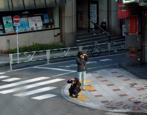 さて、目的のブックファーストの建物の前には7時頃に着いたのですが、開店時間はなんと10時(それが普通か)、まだ3時間もあります。入口前で待ち続けるのもなんなんで、しばらく通りを行ったり来たりして写真を撮ったりしていましたが、あまりにもやることが無さ過ぎだったので、マクドナルドに入ってフィレオフィッシュセットを食べながら時間を潰すことに。期せずして2回目の朝食です(<どの辺が“期せずして”なのか)。バーガを食べながら窓の外を見ていると、カメラを構えている人たちがいたのでこれ幸いと撮らせていただきました(笑)。カメラを覗く人コレクション1枚目。その後再び外へ出てぶらぶらしていると、ここ渋谷で「東京国際映画祭」が開催中であることを知りました。会場は東急百貨店の建物に併設されているらしい。入口の方へ廻ってみると、すでに何人か並んでいましたが、まだ開場していないようでした。