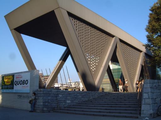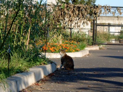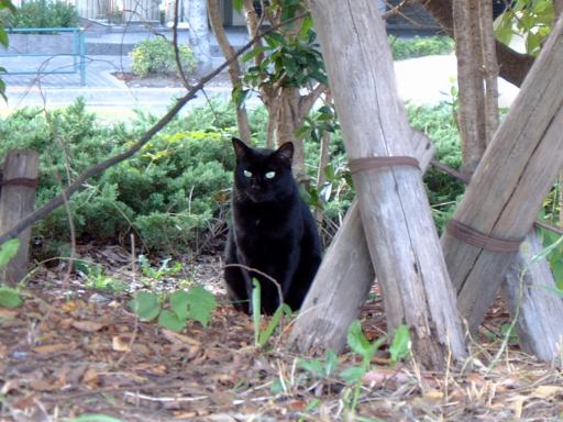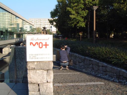 2つの原画展を梯子して主な目的は達成されたわけですが、実は上京ついでに観ておきたいものがありました。それは東京都現代美術館で催されていた「横尾忠則展」です。場所はすでにチェック済み。地下鉄で木場まで出て、そこから歩いて1キロくらいのところに美術館はあります。その途中には木場公園なるところがあったのですが、入口で案内板を写す人を発見したのですかさず激写(笑)。カメラを覗く人コレクション2枚目です。その公園の中を歩いて行くと、こんな猫にも遭遇。さら先には黒猫も。そんな写真を撮りつつ徒歩で約20分、美術館前に到着しました。まずは入館前に道路を挟んだ向いにあるコンビニでコーラを買って、持って来ていたパンとともに遅めの昼食として摂取。美術館周りには恰好のターゲットじゃなくて写真を撮っている人(笑)が多く、食事中も美術館を背景に子供を撮るお父さんをゲット。これでカメラを覗く人コレクション3枚目。美術館の表札はメタリックで、建物の入口側は鋭角です。