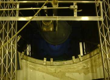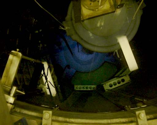 そしていよいよ原子炉のある管理区域へ。原子炉が鎮座する部屋は広く、下から見上げた原子炉(Trigger
