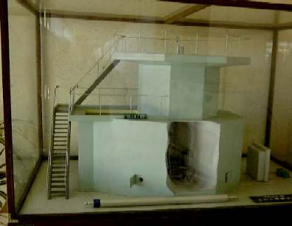 (12/2) え〜と、では、思い出しながら・・と。この日は朝9時半に大学に来て、N大理学部地球惑星科学科の車(カローラのライトバン)に荷物を載せ、予定より30分遅く10時半ごろ、神奈川県は横須賀にある立教大学原子力研究所へ向けて出発しました。乗組員は指導教官+大学院生4人の計5人。あいにくの曇り空で富士山ははっきりと見えませんでしたが、道は空いていて快適なドライブ(後部座席3人は少し狭いですけど)。車中での話をひとつ。放射化分析ではサンプルを鉛のブロックで覆って外からの余分な放射線の進入を防いでいる(遮蔽材)のですが、鉛にも放射性のものは含まれていてそこからの放射線が分析に影響を与えるので、さらに内側に鉄でシールドするらしいです。がしかし、現在の鉄には、原子炉内部ではがれたりしたときに探知できるように少量の放射性元素コバルト60が混ぜてあるそうで(これは身の回りの鉄も一緒ですよ)厳密な測定には不十分な遮蔽材であるわけです。一方、戦前の鉄はそういったものが含まれておらず、遮蔽材に向いているんだそう。戦前の鉄と言えば、そう・・沈没した軍艦ですね。実際、引き上げられた軍艦むつの鉄が使われている測定装置もあるとか(驚き)。で指導教官の知り合いの、ある先生なんかは、むつの副砲の砲身の輪切りが欲しかったらしく(もちろん遮蔽材として)切ってもらおうとしたらしいですが、べらぼうに丈夫に作られていて簡単には切れないそうです。仕方なく代わりにボルト(直径30cmくらいの)をもらったそうです。そのむつのボルトは、結局その先生の家に飾ってあるという話でした(笑)。昼食兼休憩を入れて約5時間で立教大の原子力研究所に到着。午後3時半頃でした。たぶん初めての三浦半島、初めての横須賀です。今回ここに来た目的は、原子炉の見学と、その原子炉で放射化されたサンプルの測定です。で、到着していろんな書類を10分くらいで書いてまずは原子炉の見学となりました。実はここの原子炉はこの日を最後に運転を止めるそうで、せっかくだから臨界状態の青い光を見せてもらおうということだったのです。