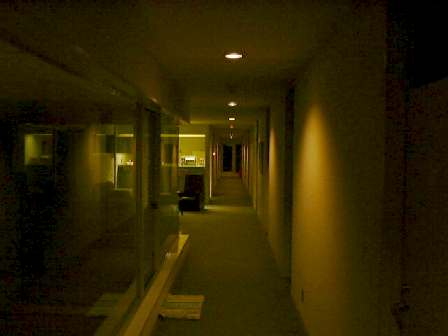 Mark II)がこれ。上に上がって見るとなにやら作業中でしたが、邪魔をしないように原子炉上部を覗き込みました。プールみたいでしたね(笑)。いやほんとに。中性子の遮蔽材兼冷却材(たぶん)の水がむき出しなんです(蓋はありますが)。飛び込もうと思えば飛び込めます。そして、内部は青く光ってます。さらに近寄って撮った臨界状態の青い光(色を強調)。原子炉を十分堪能した(笑)後、次の日にする予定だった測定も少しできることに(これはラッキィ)。早速測定室に入ってサンプルの準備。その光景がこれ。そして検出器に入れて測定(計7つ)。モニタに映し出されるカウント数のピークパタンを見つめる教官と学生(なんかパンフレットみたいですね)。途中、近くのファミリィレストランで夕食を食べた後コンビニで夜のつまみや翌日の朝食などを買って帰って、全部の測定が終わったのが夜の10時前でした。宿泊は研究所の近くの施設でした(ボート部の合宿らしい)。綺麗だしすぐ裏に入り江が迫っていて、さすがお金があるなぁと思ったしだい。部屋が並ぶいい感じの廊下。サロンっぽいところでみんなでちょっとした飲み会。このころ、体調はますます悪くなっていて、ワインをいっぱい飲んで(ワインの熱燗も含む・・笑)、熱めのお風呂に入ってすぐベッドに入りました。